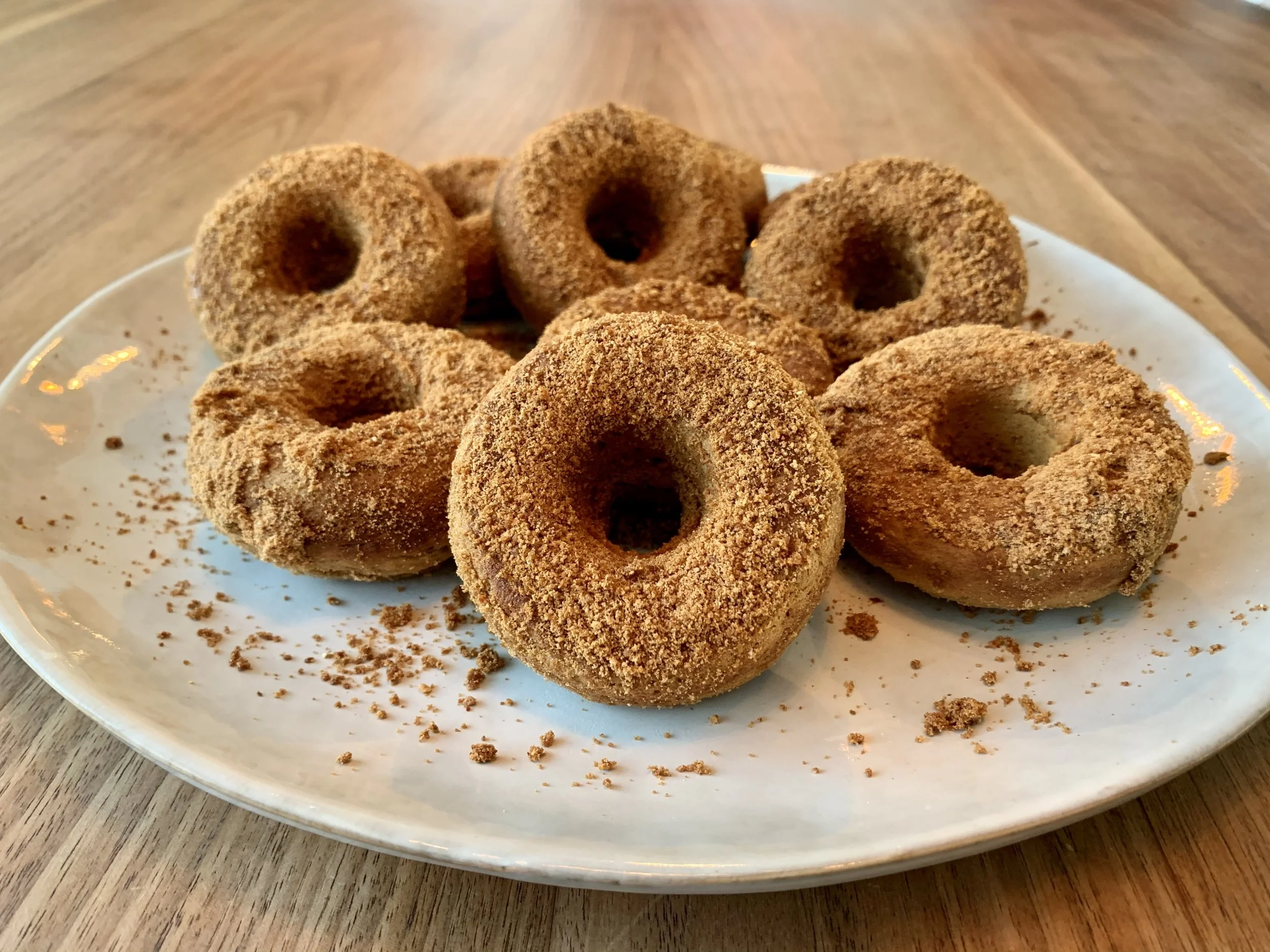 Verteile die Masse auf die Donut Formen (ca 9Stücke) und Backe sie bei 180°C für 10 Minuten.