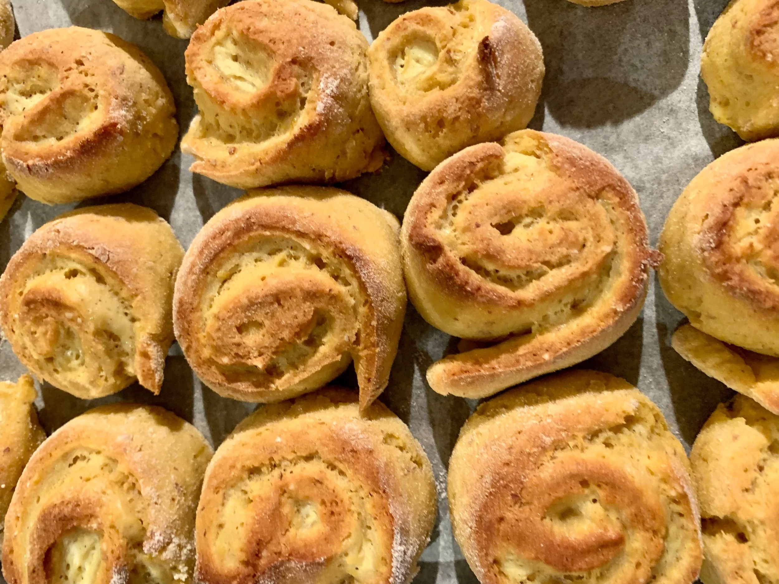 Danach werden die Schnecken für 25 inuten bei 180°C mit Ober- und Unterhitze auf der mittleren Schiene gebacken.